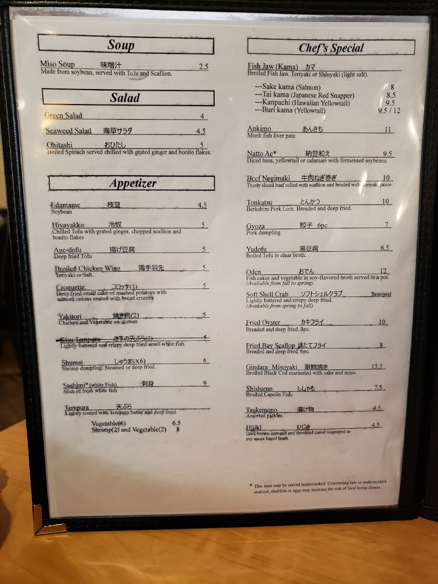 a) teriyaki b)shioyaki (salt and lemon) c) butter yaki a la carte / dinner